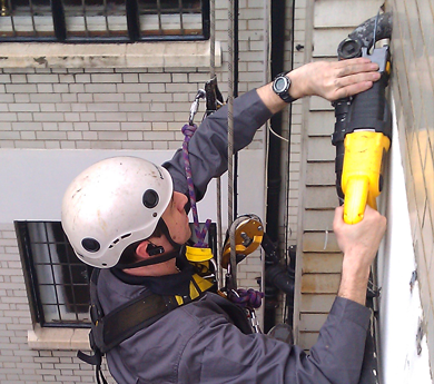 Wastage pipes in light wells are common practice for abseilers at Mach. We can also provide services in which to find leaks and take pictures to have sent straight to you of the exterior problem.